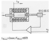 由于磁路結(jié)構(gòu)的特點,使之具有如圖6. 49b所示的幾乎水平的電磁力一行程特性,這有助于閥的穩(wěn)定性。圖6—49所示的電磁鐵的輸出是電磁推力,故稱為力輸出型,還有一種帶位移反饋的-FM位置輸出型比例電磁鐵,如圖6-50所示。后者由于有銜鐵位移的電反饋閉環(huán),因此當輸入控制電信號一定時,不管與負載相匹配的比例電磁鐵輸出電磁力如何變化,其輸出位移仍保持不變。所以它能抑制摩擦力等擾動影響,使之具有極為優(yōu)良的穩(wěn)態(tài)控制精度和抗干擾特性。