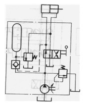 2)蓄能器加速回路快速時泵與蓄能器同時向執(zhí)行機(jī)構(gòu)供油,慢速時泵單獨(dú)供油,蓄能器充油。如圖3.2-9所示。