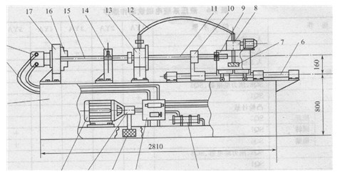 12-油封頭進(jìn)油軟管; 13-油封頭;14對開式軸承座;15-工件;16-三爪卡盤;