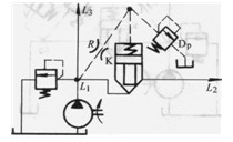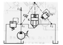 圖3. 4-18中插裝閥K液阻橋路在L1、L2形成減壓回路。在此回路中插裝閥K為常開式。L2點(diǎn)的壓力為減壓后的壓力,此壓力由先導(dǎo)溢流閥Dp調(diào)定。先導(dǎo)液阻R為插裝閥K閥心的連續(xù)變化提供條件。