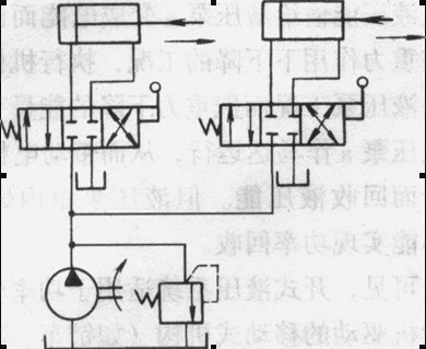 一個液壓泵向2個或2個以上的執(zhí)行機構供油。液壓泵向第一個執(zhí)行機構供油,以后機構的進出油口依次順序相聯(lián),而最后一個執(zhí)行機構的回油則流回油箱。串聯(lián)系統(tǒng)中,后一液壓執(zhí)行機構的輸入流量等于前一執(zhí)行機構的輸出流量,故串聯(lián)系統(tǒng)中執(zhí)行機構的運動速度基本上不隨外負載而變化。泵的流量在并聯(lián)系統(tǒng)中被分別供應到幾個執(zhí)行機構,故在相同情況下,并聯(lián)系統(tǒng)要求的流量比串聯(lián)系統(tǒng)要多。但并聯(lián)系統(tǒng)要求的液壓泵的油壓則比串聯(lián)系統(tǒng)小。