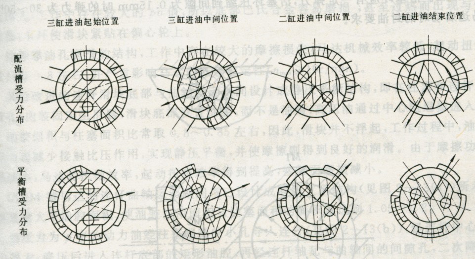 【圖2 -11 配流槽和平衡槽的受力分布】