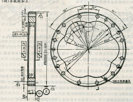 鍛造一>正火一>粗車(銑)一>精車(銑)一>鉆、鉸定位工藝孔一>車(或銑)內(nèi)曲線表面一>熱處理一>磨兩端面一>磨外圓柱面一>粗磨、精磨內(nèi)曲線表面一>檢驗(yàn)、入庫(kù)待裝配。