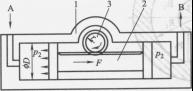 如圖所示,當(dāng)壓力油pl從A口進(jìn)入推動活塞向左作直線移動,由活塞連桿帶動曲柄并使輸出軸反時針方向擺動;反之從B口進(jìn)油,輸出軸作順時針方向擺動。它的特點是結(jié)構(gòu)簡單,擺角可調(diào)節(jié),但擺角一般不超過90。。