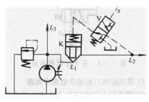 圖3.4-1中插裝閥K液阻橋路在Li、L2間形成單向回路。油液只能由Li單向地流向L2。插裝閥K控制腔上的虛線為控制油路。L3為系統(tǒng)中其他支路。