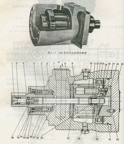 馬達(dá)殼體中部的上、下兩個(gè)螺塞23為泄漏油口,用以引出泵體中的油液,以防止馬達(dá)內(nèi)部產(chǎn)生不宜的背壓。當(dāng)馬達(dá)長(zhǎng)期重載不停運(yùn)行時(shí),可把一個(gè)油口通油箱,另一個(gè)油口通冷卻油,使泵得以循環(huán)冷卻。