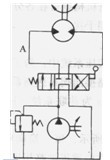 在組合機(jī)床、半自動(dòng)車床等單回路系統(tǒng)中,有時(shí)也采用雙泵。輕載快進(jìn)時(shí),兩泵合流供油,如圖1. 3-8所示。重載慢進(jìn)時(shí)卸荷閥1打開低壓大流量泵A卸荷,高壓小流量泵B單獨(dú)向系統(tǒng)供油,以節(jié)省功率降低溫升。有些油壓機(jī)、注塑機(jī)等也要求快慢速比大,并有一段保壓時(shí)間,則也用雙泵系統(tǒng),在快速時(shí)雙泵供油,慢速及保壓時(shí)單個(gè)小泵供油,以減少功率消耗和溫升。