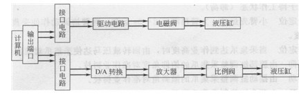由于林木球果采集作業(yè)對動作精度的要求不高,同時為了降低生產(chǎn)成本、便于推廣應(yīng)用,故采用開環(huán)控制的計(jì)算機(jī)數(shù)字程序控制系統(tǒng)(見圖8-26)。其控制參數(shù)有6個電磁換向閥為12個開關(guān)量,加2個電磁溢流閥,共14個開關(guān)量,2個電液比例調(diào)速閥為2個模擬量。