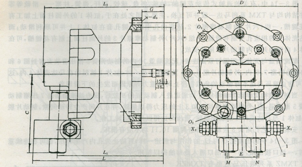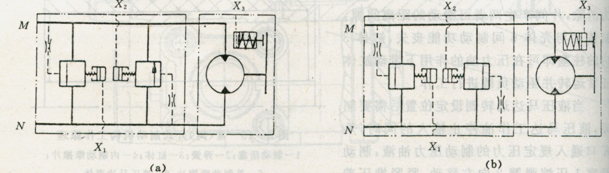 圖3-17(a)為制動器常開(K)型結(jié)構(gòu),當(dāng)馬達進油口停止供油時,制動油從X3進入,馬達即時被制動。圖3-17(b)為制動器常閉(B)型結(jié)構(gòu),馬達進油口開始通油時,必須從X3口同時導(dǎo)人壓力油,以松開制動器,液壓馬達方始可以轉(zhuǎn)動。