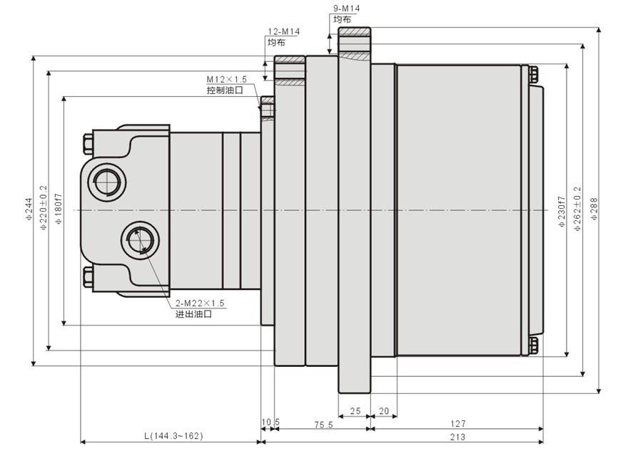 XZA系列履帶(車輪)液壓行走馬達(dá)由液壓馬達(dá)、制動(dòng)器、行星減速器、閥組等組成。為外殼傳動(dòng),可直接與車輪或履帶驅(qū)動(dòng)輪相連接,工作可靠、效率高。采用的是高承載圓錐滾子軸承設(shè)計(jì),使其完全具備承載挖掘機(jī)在工作和轉(zhuǎn)彎時(shí)所產(chǎn)生的軸向力和徑向力。本產(chǎn)品結(jié)構(gòu)緊湊、外形美觀、性能優(yōu)越,可直接替代進(jìn)口產(chǎn)品,廣泛用于鉆機(jī)、非開挖鉆機(jī)、巖土鉆機(jī)、潛孔鉆機(jī)、旋挖鉆機(jī)、掘進(jìn)機(jī)的履帶行走機(jī)構(gòu)和軌道車輛、工程車輛等設(shè)備中。 XZA系列安裝聯(lián)接尺寸